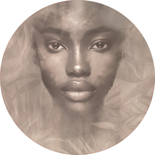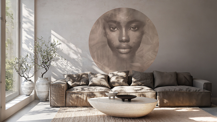 Hochwertige Tapete Kreis mit einem Motiv eines weiblichen Gesichts – hergestellt mit umweltfreundlicher Tapetendrucktechnologie