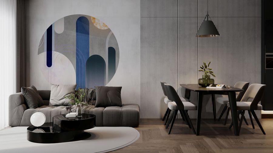 Tapete Tiles der graue Hintergrund mit dezenter Reibung harmoniert gut mit den ausdrucksstarken geometrischen Formen in kräftigen Farben. Diese dekorative Kombination fällt auf den ersten Blick ins Auge und bringt einen modernisierten Retro-Stil in die Einrichtung. Tapete Tiles ist ideal für eine Wand im Wohn- oder Schlafzimmer.
