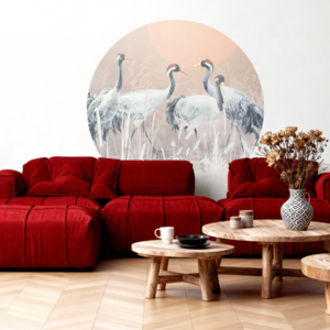 Hochwertige Tapete Kreis mit Kranichmotiv – hergestellt mit umweltfreundlicher Tapetendrucktechnologie