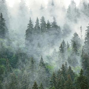 Hochwertige Wandtapete mit Nebelwaldmotiv - hergestellt im umweltfreundlichen Tapetendruckverfahren
