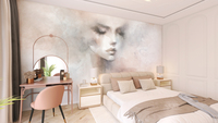 Dezentes Tapetenmuster Pastel, mit einer flüchtigen Zeichnung eines zarten Frauengesichts ist eine subtile Ergänzung, die einen Hauch von diskreter Eleganz und Geheimnis in den Innenraum bringt. Gedämpfte, pastellige Farben schaffen eine Atmosphäre der Harmonie, Ruhe und Entspannung. Die hellen, leuchtenden Töne der Tapete vergrößern optisch auch einen kleinen Raum. Das kunstvolle Muster harmoniert mit einer Vielzahl von Einrichtungsstilen, insbesondere mit modernem Minimalismus, skandinavischem Stil, Eklektizismus, Industrial oder Glamour. Pastel verwandelt Ihr Schlafzimmer, Wohnzimmer, Arbeitszimmer oder Ankleidezimmer im Handumdrehen.