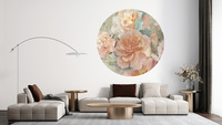 Hochwertige Tapete Kreis mit einem Muster aus zarten Rosen in Pastellfarben – hergestellt mit umweltfreundlicher Tapetendrucktechnologie