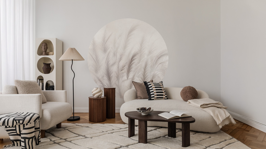 Hochwertige Tapete Kreis mit XXL-Grasbüschel-Motiv – hergestellt mit umweltfreundlicher Tapetendrucktechnologie