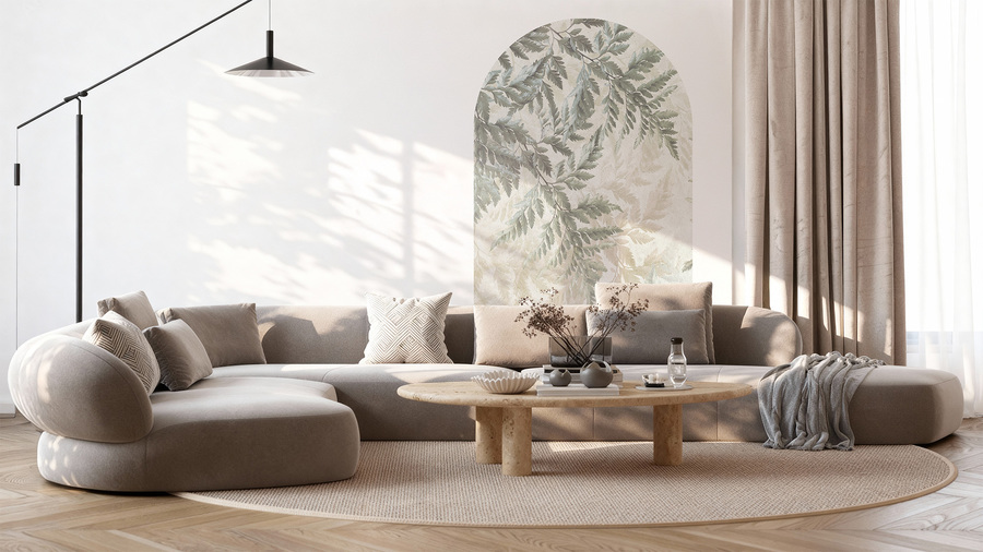 Hochwertige Bogentapete mit botanischem Farnblattmuster – hergestellt mit umweltfreundlicher Tapetendrucktechnologie