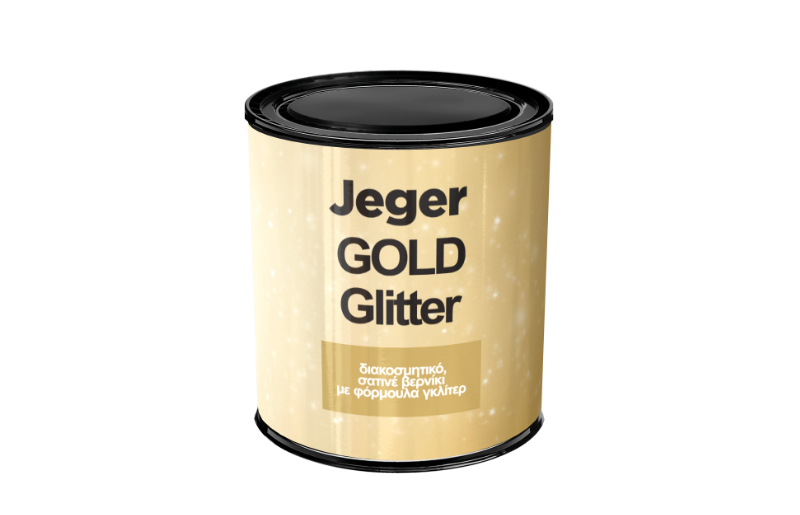 Διακοσμητικό σατινέ βερνίκι Jeger Glitter Gold με σύνθεση glitter. Σας επιτρέπει να διακοσμείτε τοίχους και να εμπλουτίζετε τα διακοσμητικά εφέ με επιπλέον ασημένιες αντανακλάσεις λαμπερών κρυστάλλων (π.χ. Jeger Sahara ή Jeger Onyx).
