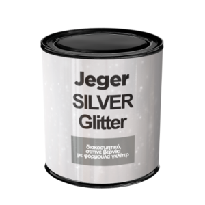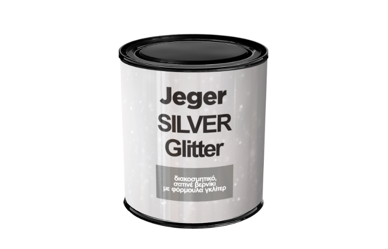 Διακοσμητικό σατινέ βερνίκι Jeger Glitter Silver με σύνθεση glitter. Σας επιτρέπει να διακοσμείτε τοίχους και να εμπλουτίζετε τα διακοσμητικά εφέ με επιπλέον ασημένιες αντανακλάσεις λαμπερών κρυστάλλων (π.χ. Jeger Sahara ή Jeger Onyx).