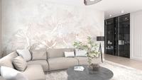Aukštos kokybės fototapetas su subtiliu pastelinių lapų piešiniu – pagamintas ekologiška spausdinimo technologija