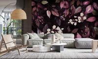 Tapetas pagal užsakymą – rožiniai lapai ir vyšnių žiedai, tamsus fonas – pagamintas ekologiška spausdinimo technologija