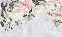 Tapetas pagal užsakymą – didelės gėlės ir lapai, šviesus betonas – pagamintas ekologiška spausdinimo technologija