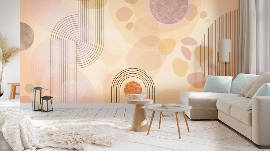 Caramel tapetas su geometriniais raštais, susijusiais su 70-ųjų stilistika, suteiks interjerui meninio charakterio. Šiltos karamelės spalvos boho stiliuje sukurs jaukią atmosferą namuose. Dėl nevienodos kompozicijos raštas žavi efektinga išvaizda ir puikiai dera su medžio, lino ir pynimo elementais. Idealiai papildys šiuolaikinių interjerų boho, retro ir vintage stilių aplinką.