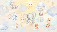 Išskirtinis, spalvingas Dream tapetas su pasakišku piešiniu tarsi iš sapno. Švelnus, šviesus dangus yra fonu žaviems pūkiniams mėlyniems debesėliams, linksmų saulutės, mėnulio ir žvaigždučių piešiniui. Bet tai dar ne viskas – pagrindinį vaidmenį čia atlieka simpatišų gyvūnėlių figūros, su kuriomis jūsų mažylis tikrai iš karto susidraugaus! Kupini teigiamos energijos: meškiukas, šuniukas, dramblys, lapė, triušis, pelytė ir žirafa išgauna šypseną veide ir kviečia į begalinio žaidimo pasaulį. Santūri, pastelinė spalvų paletė sukuria idilišką vaiko kambario atmosferą, atpalaiduoja ir palengvina užmigimą.