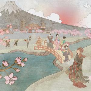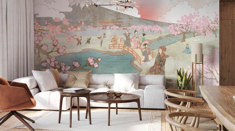 Tapetas su aukščiausio Japonijos kalno – Fuji, kuris taip pat yra ugnikalnis – piešiniu. Fuji žavi dizainu, turtingu detalėmis, ir santūrių pilkos, šviesiai žalios ir rožinės spalvų derinimu. Dėmesį patraukia figūros, apsirengusios puoštais, tradiciniais japonų kimono ir būdingas Japonijai simbolis – rožiniai žydinčių vyšnių žiedai. Į šį raštą galima žiūrėti valandų valandas! Tinka klasikinio, eklektiško ir japandi stiliaus interjerams bei įrengtiems su natūralių medžiagų panaudojimu.