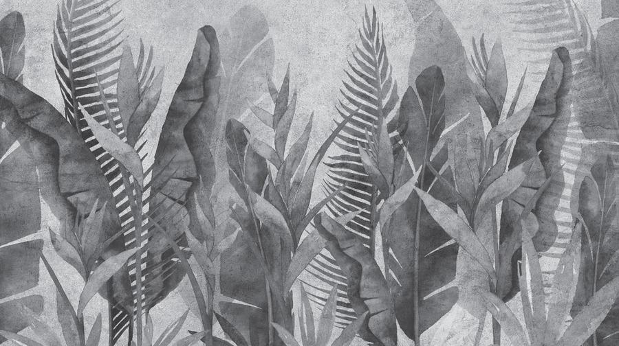 Aukštos kokybės pilkos spalvos tapetas su lapų piešiniu – pagamintas ekologiška spausdinimo technologija