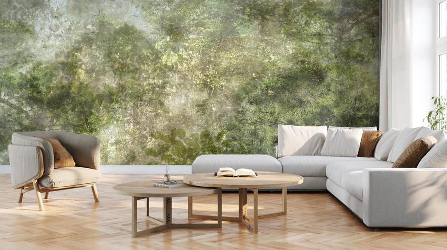 Aukštos kokybės tapetas su žalių medžių lajų piešiniu – pagamintas ekologiška spausdinimo technologija