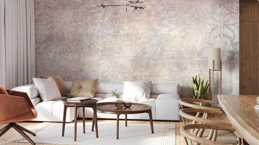 Atmosferiškas Mandala tapeto dizainas padės sukurti harmoniją, ramybę ir pusiausvyrą jūsų namuose. Subtilus, geometrinis mandalos motyvas sukurtas ant nereguliarios struktūros, imituojančios betono efektą. Dažytas ramiais, persipynusiais rudais, smėlio ir pilkais atspalviais, tapetas bus idealus jaukiam boho stiliaus interjerui. Dekoruodami sienas šiuo piešiniu sukursite