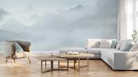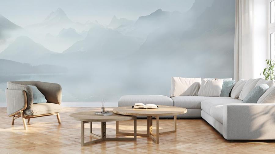 Kažką žavi tapyba – Mountains tapetas su kalnų peizažo piešiniu balintais, mėlynai pilkais atspalviais. Švelni, neutrali spalva ir aiškių formų nebuvimas optiškai padidins interjerą, suteikdamas jam daugiau šviesos ir erdvės. Derinys su betono faktūros medžiaga gražiai pabrėžia minimalistinio piešinio niuansus. Vėsios Mountains tapeto spalvos puikiai dera su baldais ir aksesuarais dominuojančiomis, išraiškingomis spalvomis. Tiks šiuolaikiniams, minimalistiniams ir eklektiškiems interjerams.
