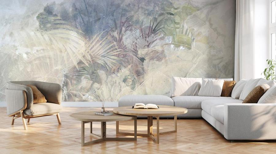 Oasis motyvas siejasi su egzotiškais motyvais – pastelinė džiunglių versija, suausta iš plačių bananmedžių ir palmių lapų, bus subtili jūsų interjero dekoracija. Raštas sukurtas centrinėje kompozicijoje, specialiai harmonijos ir simetrijos mylėtojams. Svajingas vaizdas padeda apmąstymams ir poilsiui – puikiai tiks miegamajam ir svetainės sienai. Šiuo tapetu sukursite ramybės ir tylos oazę, kurioje poilsis bus vienas malonumas.