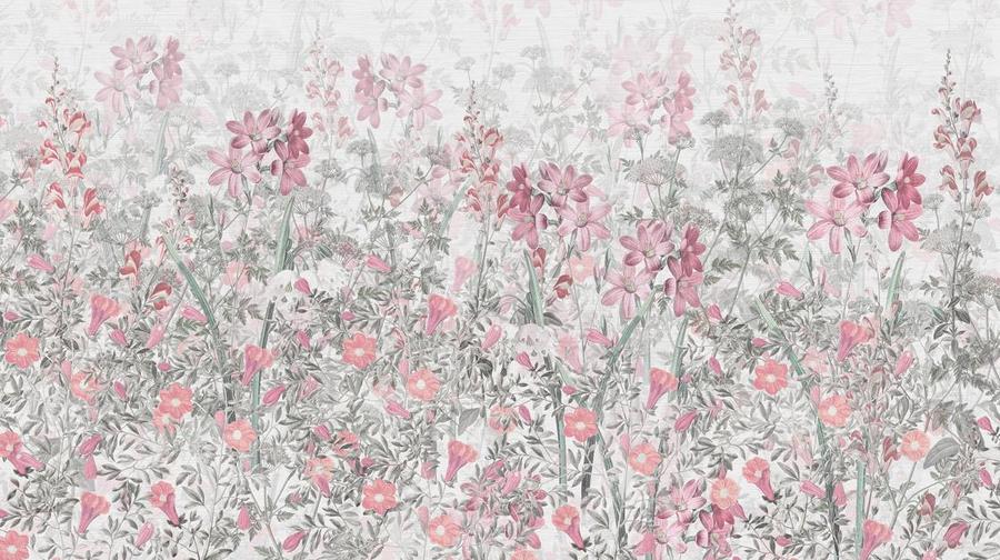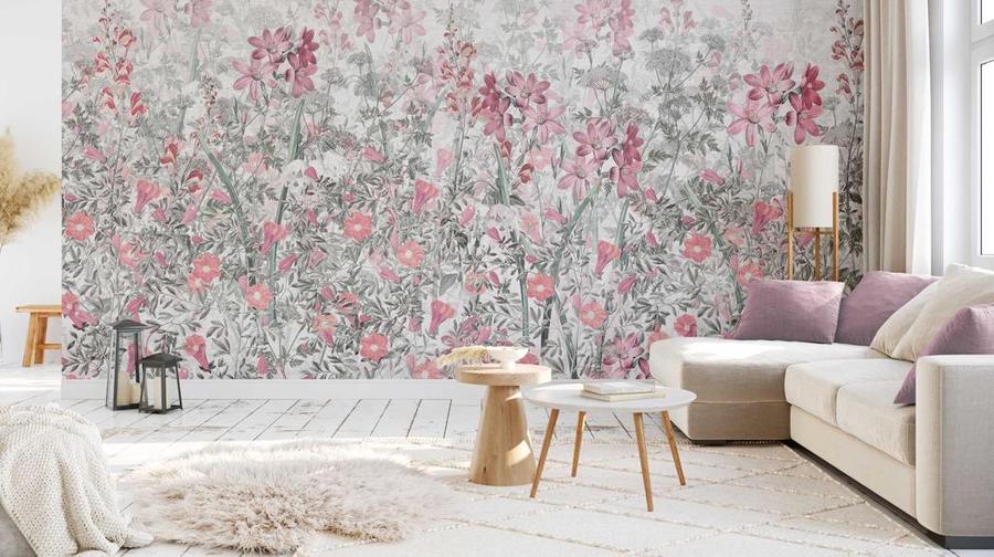 Aukštos kokybės tapetas su rožinių žolelių piešiniu – pagamintas ekologiška spausdinimo technologija