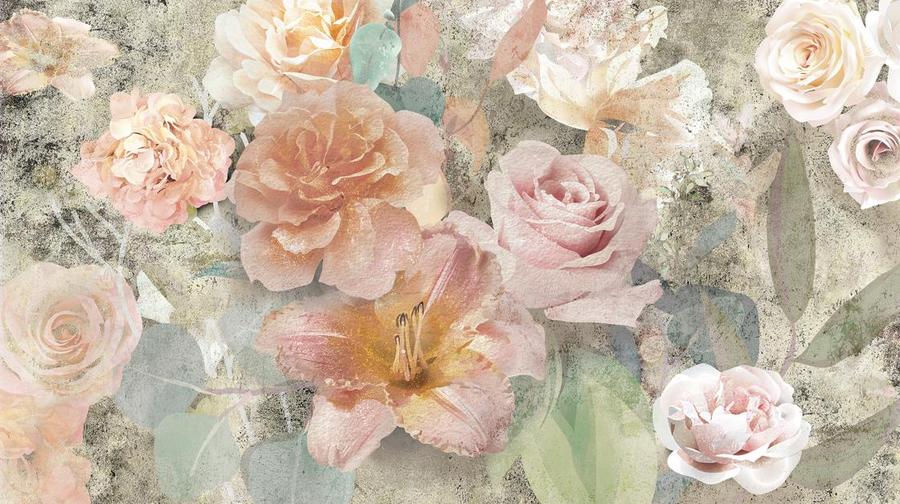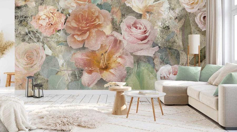 Aukštos kokybės tapetas su subtilių rožių piešiniu pastelinėmis spalvomis – pagamintas ekologiška spausdinimo technologija