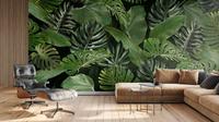 Aukštos kokybės tapetas su pasikartojančiu monstera ir bananmedžio lapų piešiniu – pagamintas ekologiška spausdinimo technologija