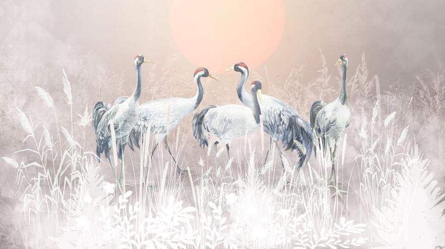 Aukštos kokybės tapetas su gervių piešiniu – pagamintas ekologiška spausdinimo technologija