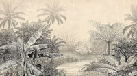 Žavintis gausios augmenijos raštas tarsi medžio raižinys vaizduoja nepaprastą kraštovaizdį su tropiniais medžiais. Turtingumas, realistiškos detalės ir žemės spalvos, nušviestos šilta šviesa, kuria namuose jaukumo atmosferą. Woodcut tapeto scena idealiai tiks urban jungle, boho ar biophilic design stiliaus atmosferai, bet taip pat bus puikia sienų puošmena neperkrautuose, minimalistiniuose, su meile gamtai įrengtuose interjeruose.