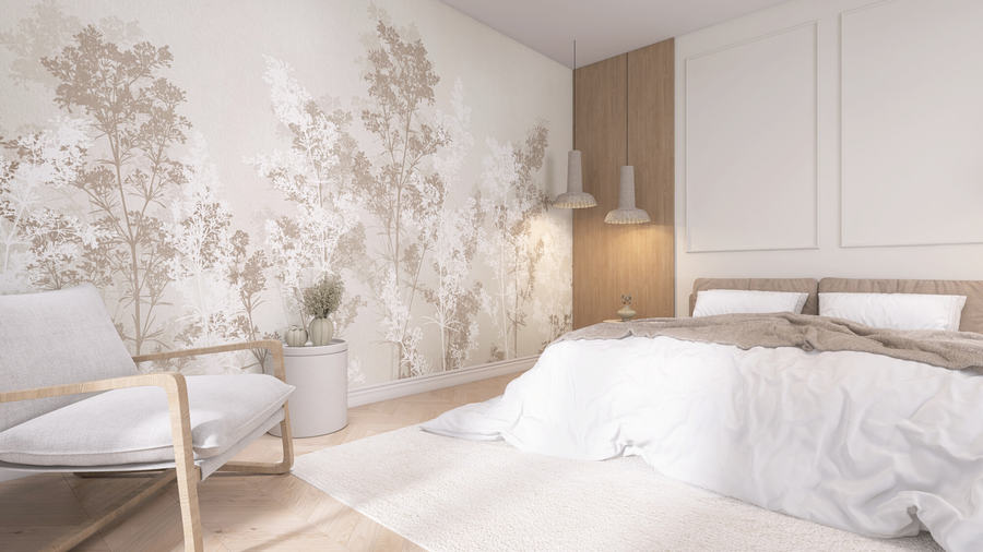 Wallpaper Glade this is a light and ethereal composition inspired by a minimalist herbal meadow, maintained in delicate shades of beige and white. Its subtle pattern creates a calm and natural atmosphere, ideal for Scandinavian, Japandi, or rustic interiors. It is an excellent choice for those who want to surround themselves with harmony and nature without leaving home.