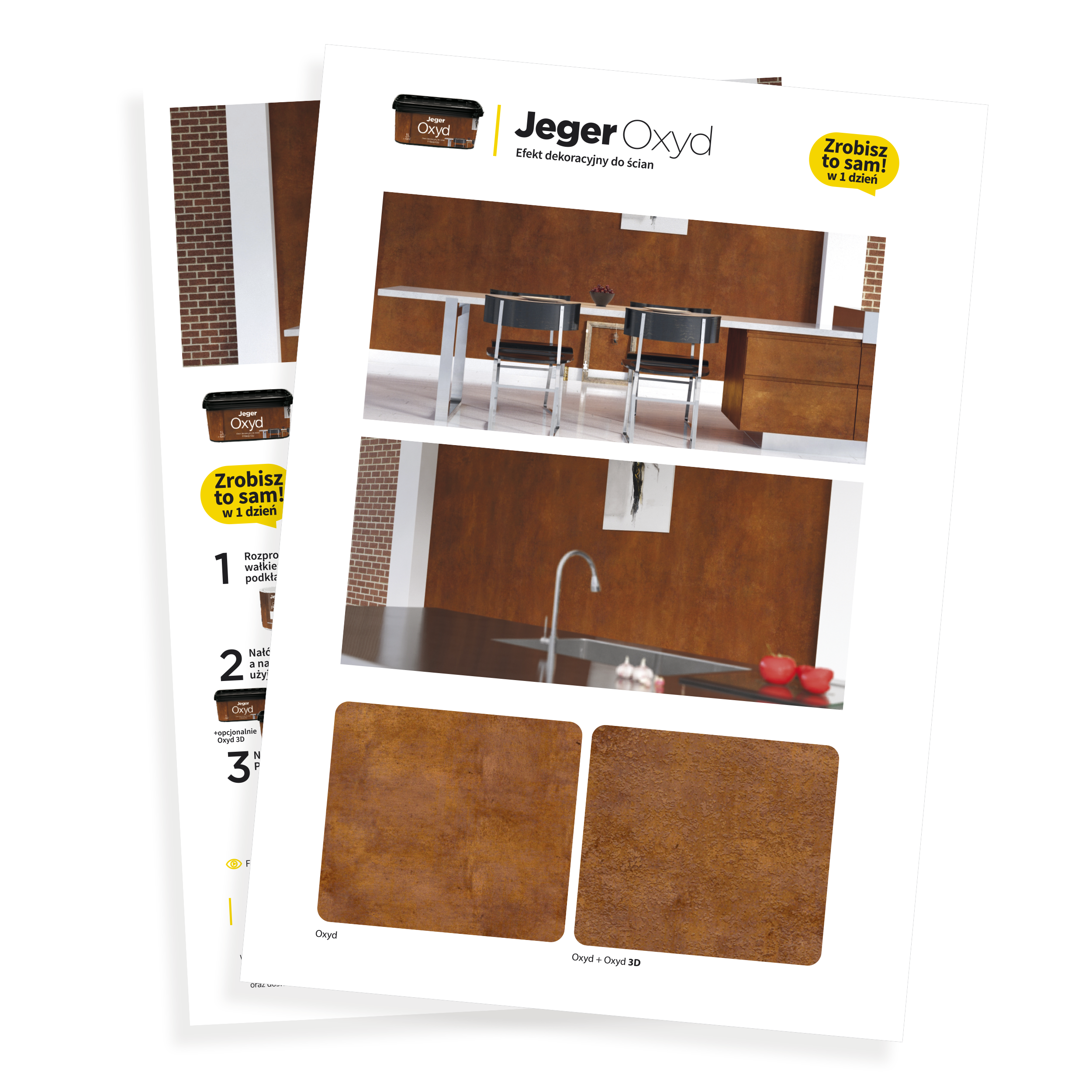 Jeger Oxyd – Sample Set presents real samples of decorative effects made using authentic materials, not printed graphics. This allows you to see the actual structure, gloss, and depth of the finish you will achieve in your own interior.
