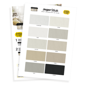 Jeger Stiuk – Sample Set presents real samples of decorative effects made using authentic materials, not printed graphics. This allows you to see the actual structure, gloss, and depth of the finish you will achieve in your own interior.
