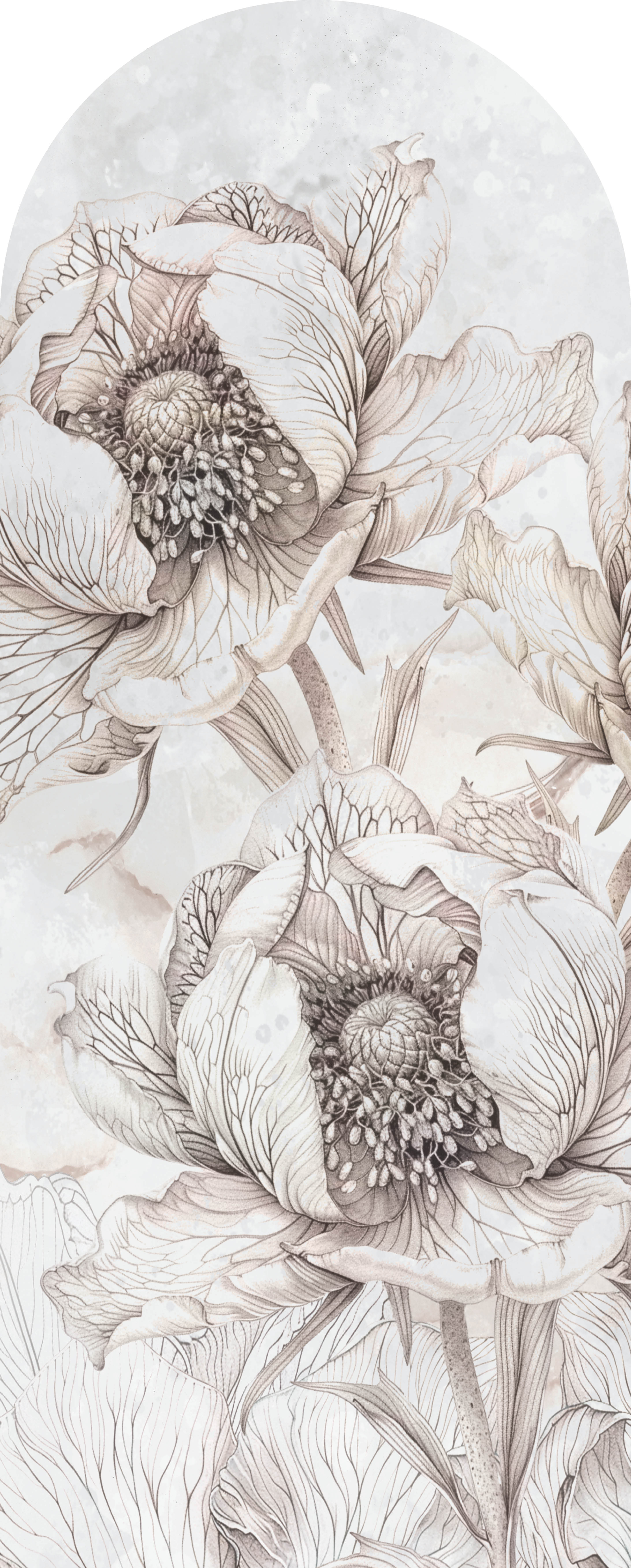 High-quality arch wallpaper with a subtle pattern of hand-sketched flowers – made using eco-friendly wallpaper printing technology.