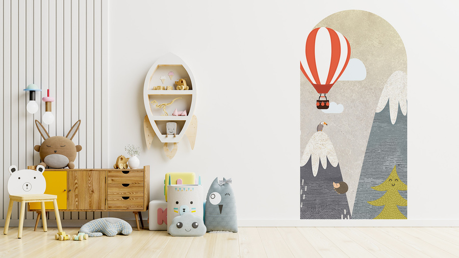 High-quality custom-made arch wallpaper with a fun balloon motif – made using eco-friendly wallpaper printing technology