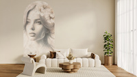 Romantic wallpaper Beauty is like a tale of love intertwined with nature. Its subdued background, woven with delicate, transparent outlines of flowers, exudes subtlety and charm, creating an atmosphere of romantic idyll. The woman's face is a motif from which you can't take your eyes off. Beauty perfectly suits Scandinavian interiors, classic style with a romantic touch, boho and vintage arrangements - where it will find itself surrounded by old furniture and accessories with soul. It will be an excellent decoration of a bedroom or living room. In an interior decorated with wallpaper Beauty You will relax and soothe your senses.