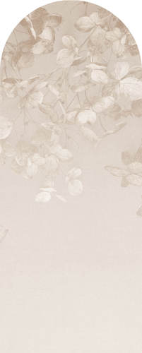 High-quality arch wallpaper in warm beige tones with a floral motif – made using eco-friendly wallpaper printing technology.