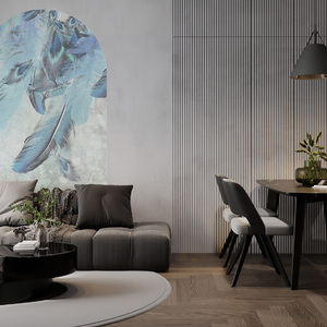 Do you like exaggerated patterns in XXL form that immediately catch the eye in the interior? Reach for the wallpaper Fly With a motif of soft, large feathers. The color scheme, maintained in a uniform blue and turquoise palette, brings a nostalgic elegance to the interior that calms and stabilizes emotions. This pattern will work well in a spacious living room and bedroom, creating an atmospheric space conducive to relaxation. Ideal for modern and classic interiors.