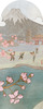 Wallpaper with the motif of the highest mountain in Japan - Fuji, which is also a volcano. Fuji impresses with a design rich in detail and a juxtaposition of subdued colors in a palette of gray, light green and pink. Attention is drawn to the figures dressed in ornate, traditional Japanese kimonos and Japan's signature symbol - pink cherry blossom flowers. You can look at this pattern for hours! It suits interiors in classic, eclectic and japanese styles, as well as those decorated with natural materials.