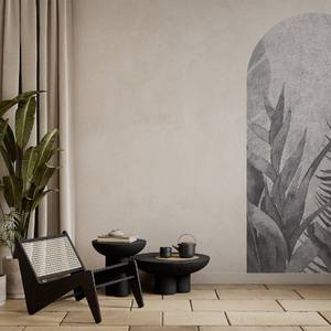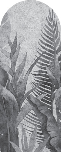 High-quality gray arch wallpaper with a leaf motif – made using eco-friendly wallpaper printing technology