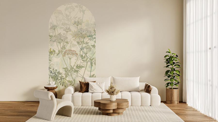 High-quality arch wallpaper with a wild herb motif – made using eco-friendly wallpaper printing technology