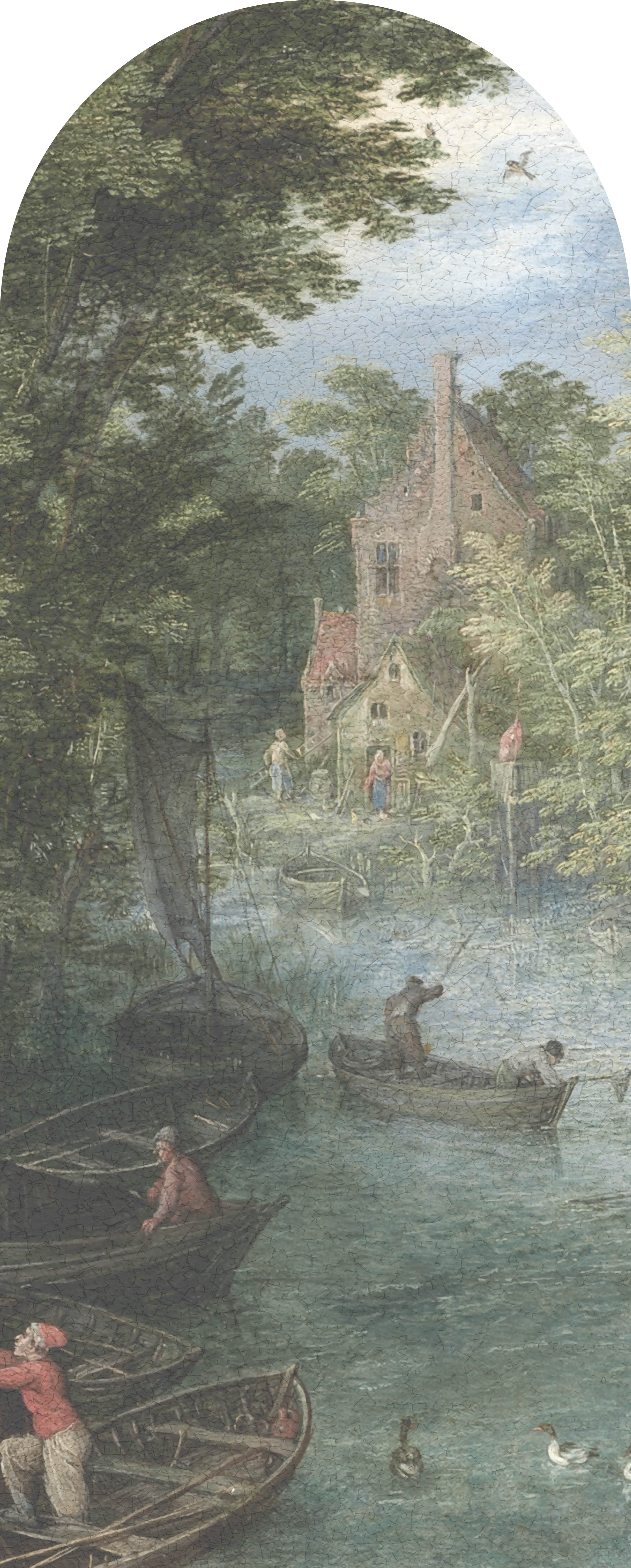 Wallpaper Haga with a uniquely painterly character, depicting the landscape of the ancient Hague, refers to Dutch painting of the 16th century. This amazing landscape will be a leitmotif in building the mood in your interior and will add optical spaciousness to the room. The landscape is both realistic, with a meticulous rendering of tiny figures and details, and fairy-tale-like - the shade of the water almost blends with the color of the sky, illuminated by soft light. The picturesqueness of the image is enhanced by the combination with a canvas-textured material. Wallpaper with this motif will be a unique decoration for various types of interiors, both those maintained in modern style and those of classic design.