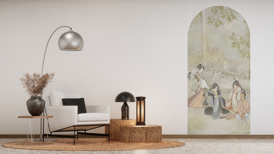 Are you fascinated by the culture of Japan? Decorate your wall with a unique pattern from the Japan collection, depicting the traditional Japanese custom of hanami, or admiring the beauty of flowers. Eye-catching pattern Hanami combines a wealth of details and a soft color scheme of muted green. The multitude of elements, thanks to the subdued color palette, does not overwhelm, bringing harmony and tranquility to the interior. Hanami it will perfectly fit into arrangements in the classic and japanese style, as well as interiors decorated with natural materials.