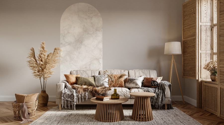 High-quality arch wallpaper with a delicate pattern of natural minerals – made using eco-friendly wallpaper printing technology