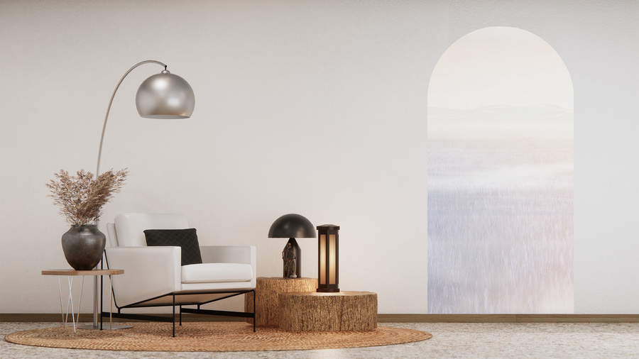 High-quality arch wallpaper with a lavender field motif – made using eco-friendly wallpaper printing technology