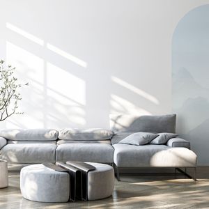 Something for lovers of painterly impressions - wallpaper Mountains with a motif of a mountain landscape in bleached blue grays. Soft, neutral colors and the lack of clear shapes will optically enlarge the interior, adding more light and space. Combined with a concrete-textured material, it beautifully highlights the nuances of the minimalist pattern. Cool colors of the wallpaper Mountains works well with furniture and accessories in dominant, distinctive colors. It will work well in modern, minimalist and eclectic interiors.