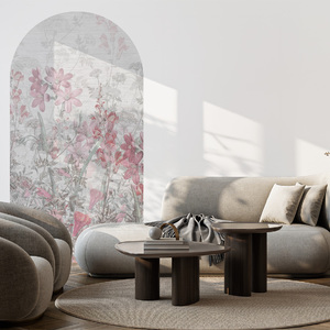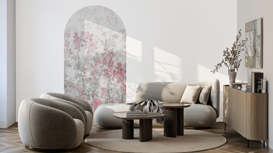 High-quality arch wallpaper with a pink herb pattern – made using eco-friendly wallpaper printing technology