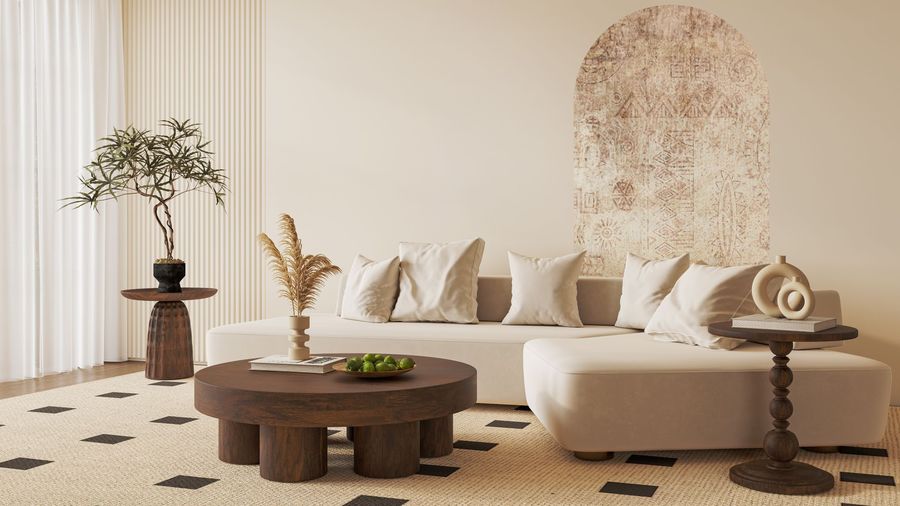 Are you comfortable with boho style interiors? Wallpaper Roots with a motif inspired by ancient drawings will be perfect for your home. The shade of calm beige will introduce an atmosphere of warmth and coziness to the interior. Applied on the entire surface of the wallpaper, subtle rubbing, give the effect of atmospheric aging - they look great on the material with the structure of concrete, which further enhances the character of the pattern. Wallpaper with this motif suits interiors in boho, japanese style, decorated with furniture and accessories made of natural materials.