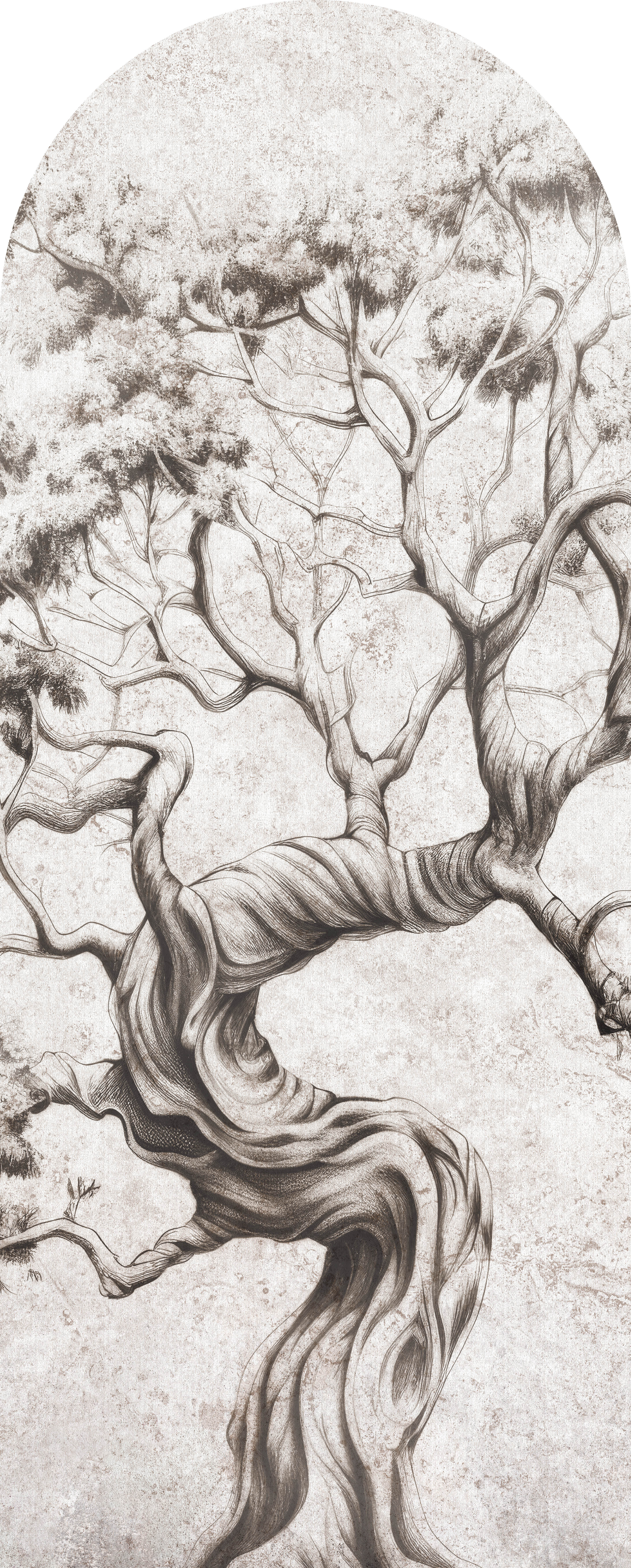 High-quality arch wallpaper with an artistic pattern of old, twisted trees – made using eco-friendly wallpaper printing technology