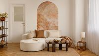 Energetic wallpaper pattern and colors Verta they will stimulate you to action and make you feel good even on the most cloudy days. Against the background of subdued shades of orange, the motif of an abstract swirl, cutting off from the rest of the picture with its intense color, catches the eye. Inspired by nature, it can be associated with the sun on a summer afternoon, the heated lava of a volcano, the sky at sunset - warmth that will bring a cozy atmosphere to your interior. It looks great in modern Scandinavian bright interiors.