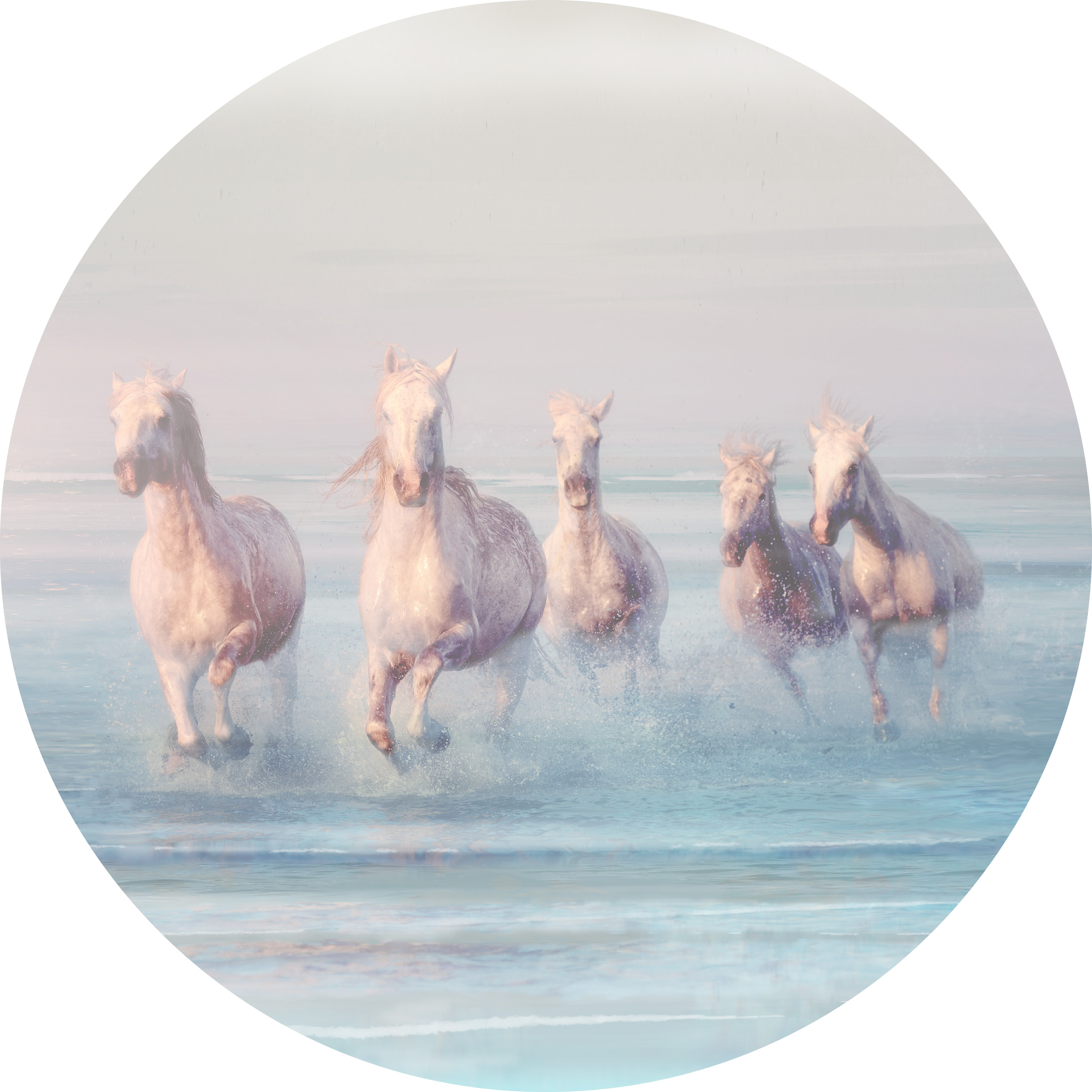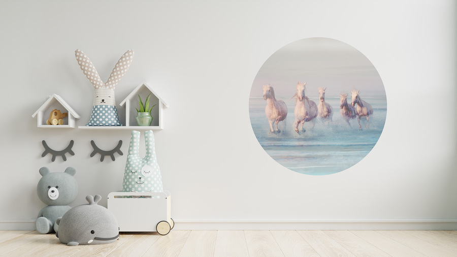High-quality wallpaper circle with a galloping horse motif – made using eco-friendly wallpaper printing technology