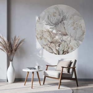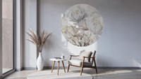 High-quality circle wallpaper with a stunning pattern of large, full flowers – made using eco-friendly wallpaper printing technology.