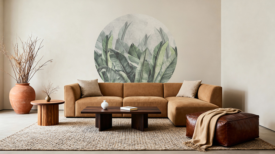 High-quality circle wallpaper with a large banana leaf pattern – made using eco-friendly wallpaper printing technology