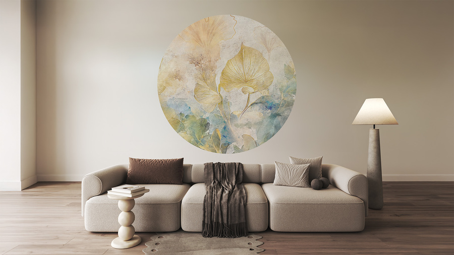 Feel the power of nature, admire the beauty of plant shapes and colors - wallpaper with a motif of large, painterly leaves will transport you to the fascinating world of plants. Biloba wraps the wall with warm, pastel colors of yellow-gold leaves rustling in the wind. The whole image is complemented by turquoise shades of other floral motifs, filled with a sand-beige background. Wallpaper with this pattern brings a unique atmosphere of the world of flora to the arranged interiors, which gives a sense of harmony coming straight from nature. Biloba podkreśli Your individualism and fascination with the surrounding world. It will enhance the beauty of classic and modern interiors.